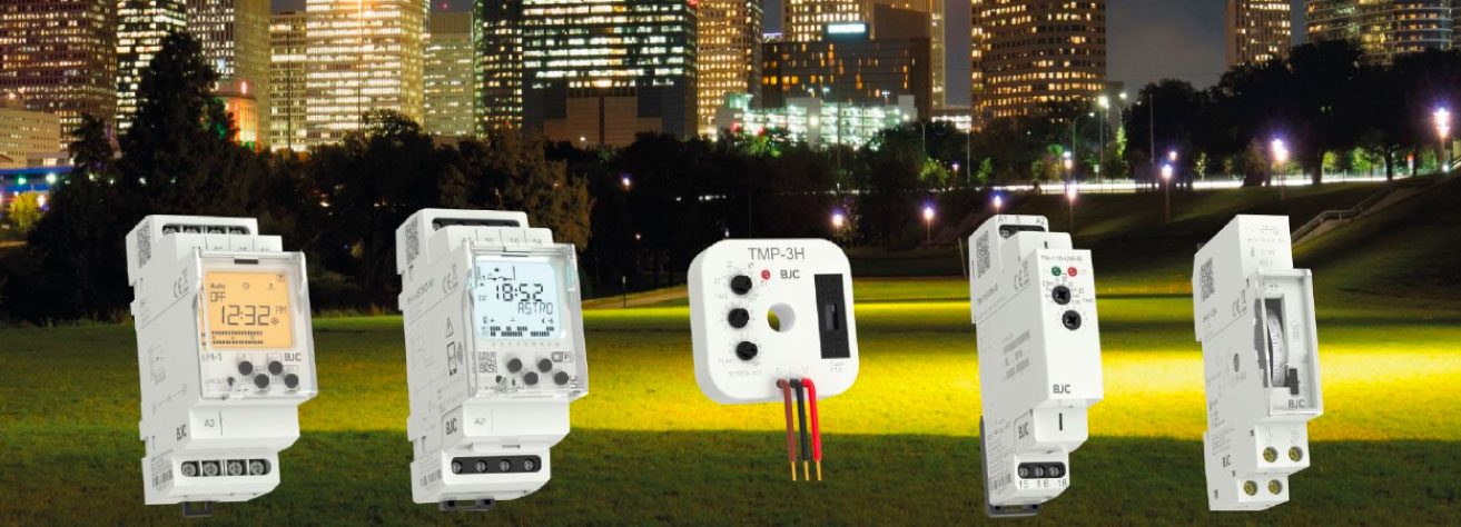 La familia de relés de BJC incluye distintos tipos de dispositivos, como relés temporizados, minuteros de escalera, interruptores horarios y crepusculares, reguladores de luminosidad, telerruptores, relés auxiliares de potencia y de monitoreo. Entre los distintos tipos de relés de la gama, destacan los interruptores horarios digitales, algunos de los cuales incorporan funciones astronómicas. Estos tipos de relés sirven para activar o desactivar cargas eléctricas (como iluminación exterior, rótulos, calefacción, etc.) en función de un horario (diario, semanal, mensual o anual), la salida y puesta del sol o varias combinaciones de ellos, sin necesidad de utilizar una célula crepuscular. Además, los modelos de mayores prestaciones disponen de conexión Wifi, que les permite mantener siempre la hora exacta si están conectados a internet al tiempo que pueden programarse de forma local mediante Wifi o remota mediante Web (WRC).